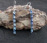 zilveren oorbellen met blauw perspex tussen 2 zilveren plaatjes