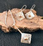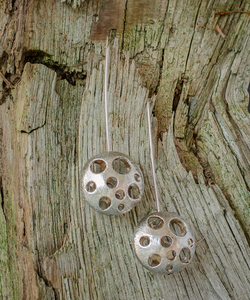 2010oorhangers van gehamerd zilver met bronzen bolletje. ook verkrijgbaar als hanger
