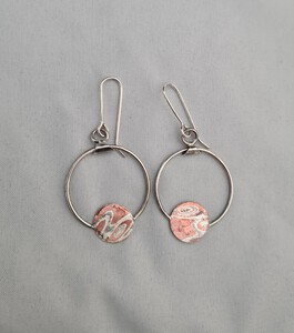 zilveren oorhangers met plaatje mokume