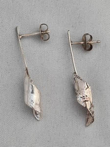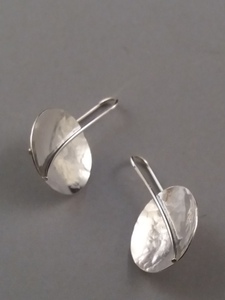 2014zilveren oorhangers, bestaande uit 4 aan elkaar gesoldeerde delen. gehamerd en uitgefreesd