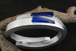 2014titanium armband (massief) een helft naturel, de andere blauw geanodiseerd. magneetsluiting. wordt op maat gemaakt
